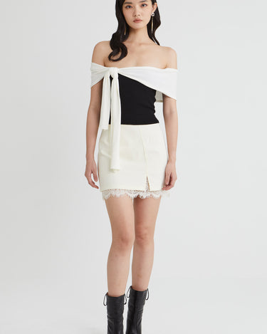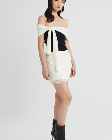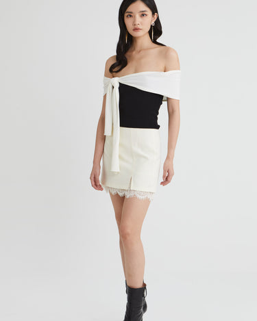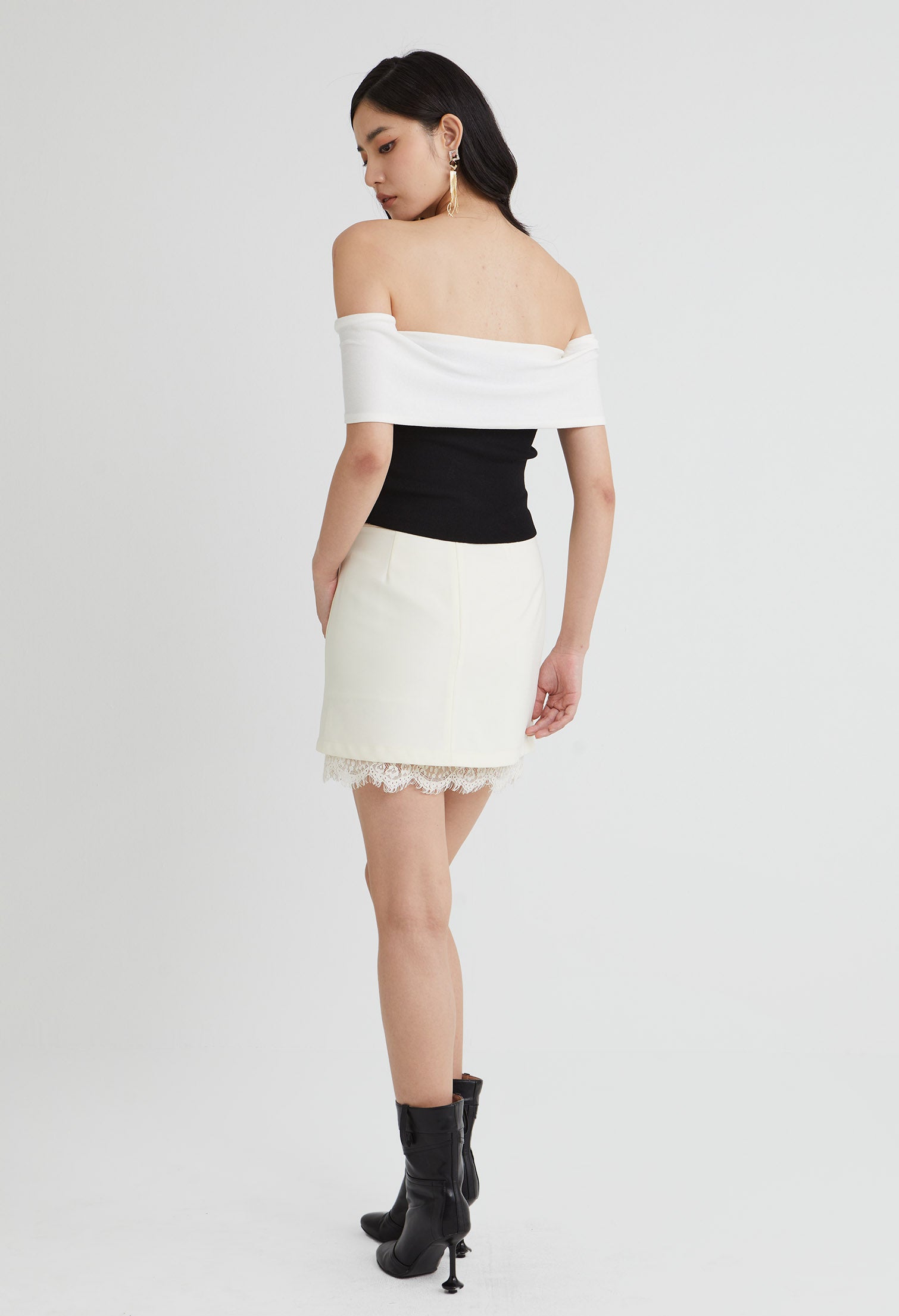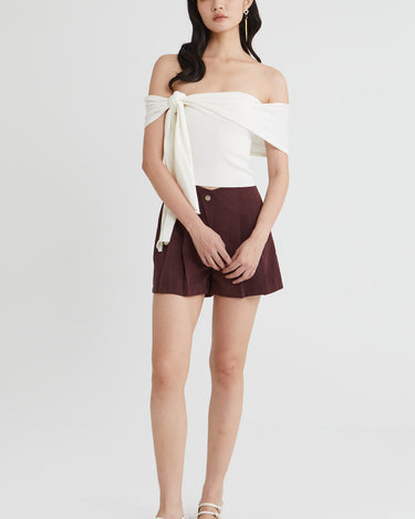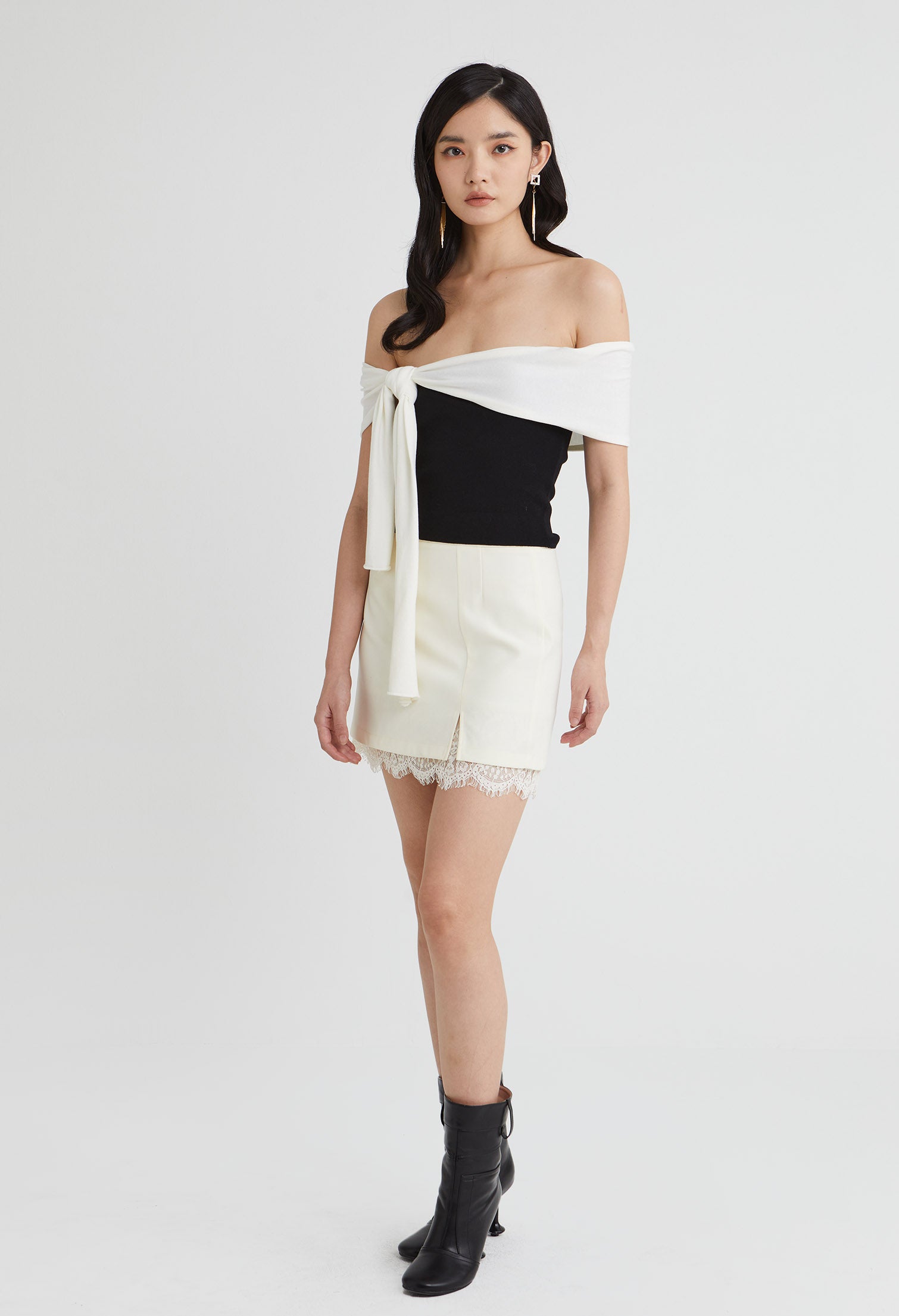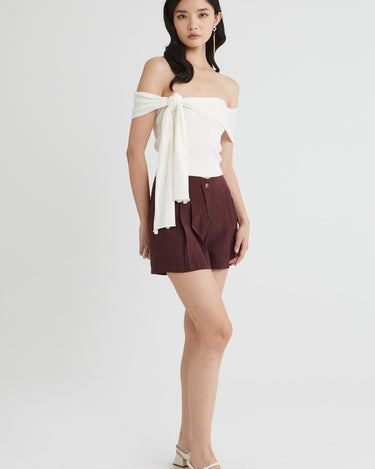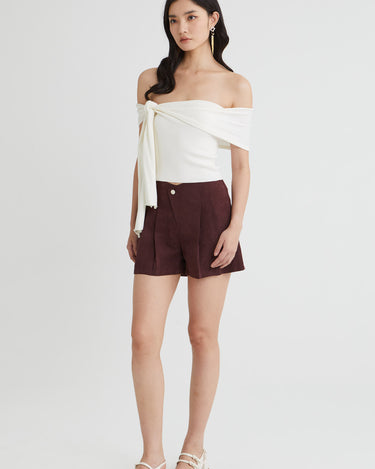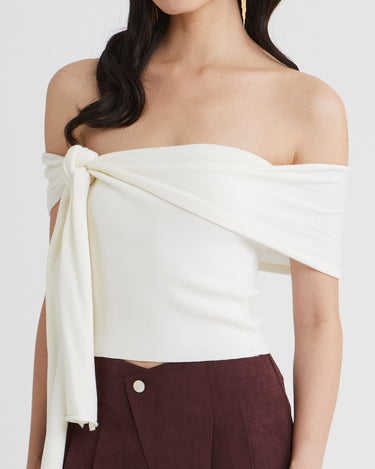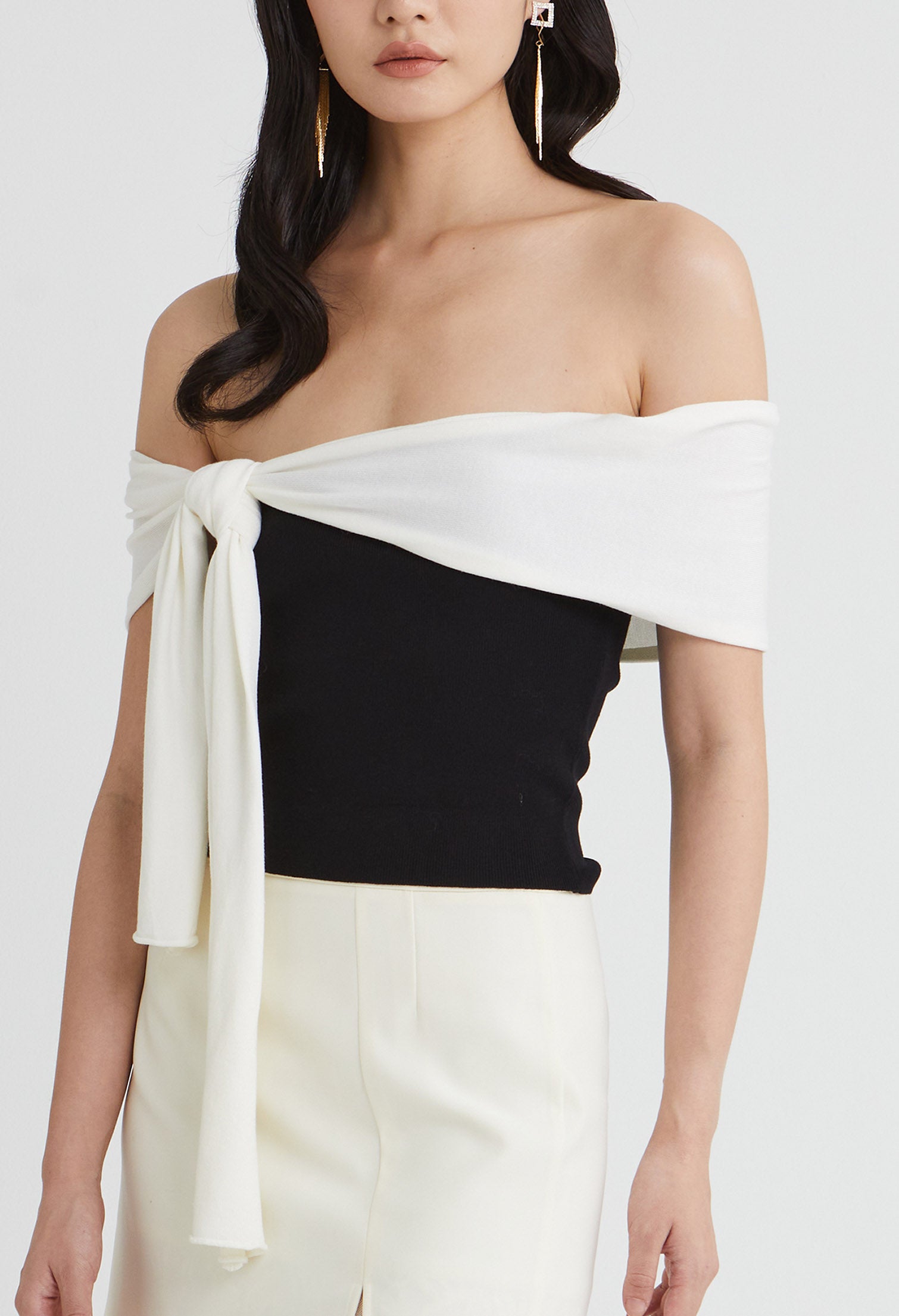 - Assymetrical Off-shoulder Drape