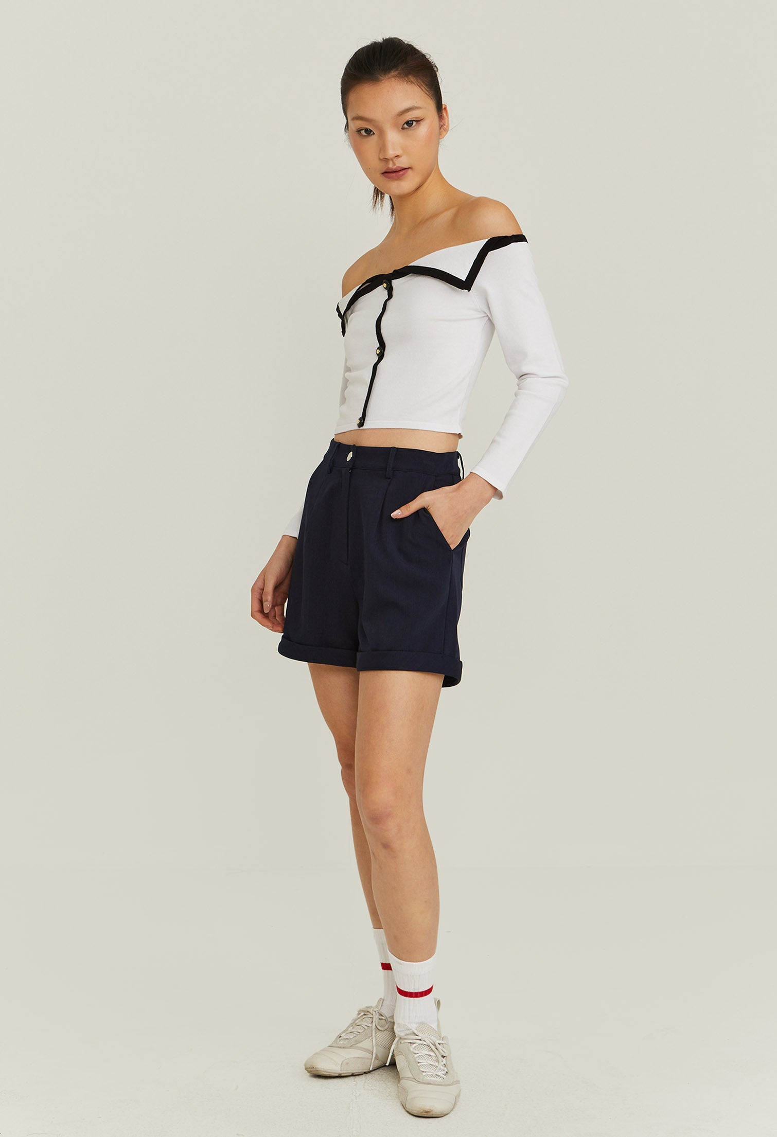Off-shoulder Sailor Crop Top